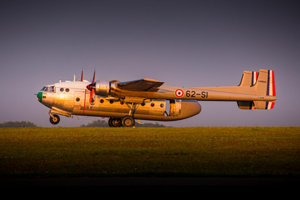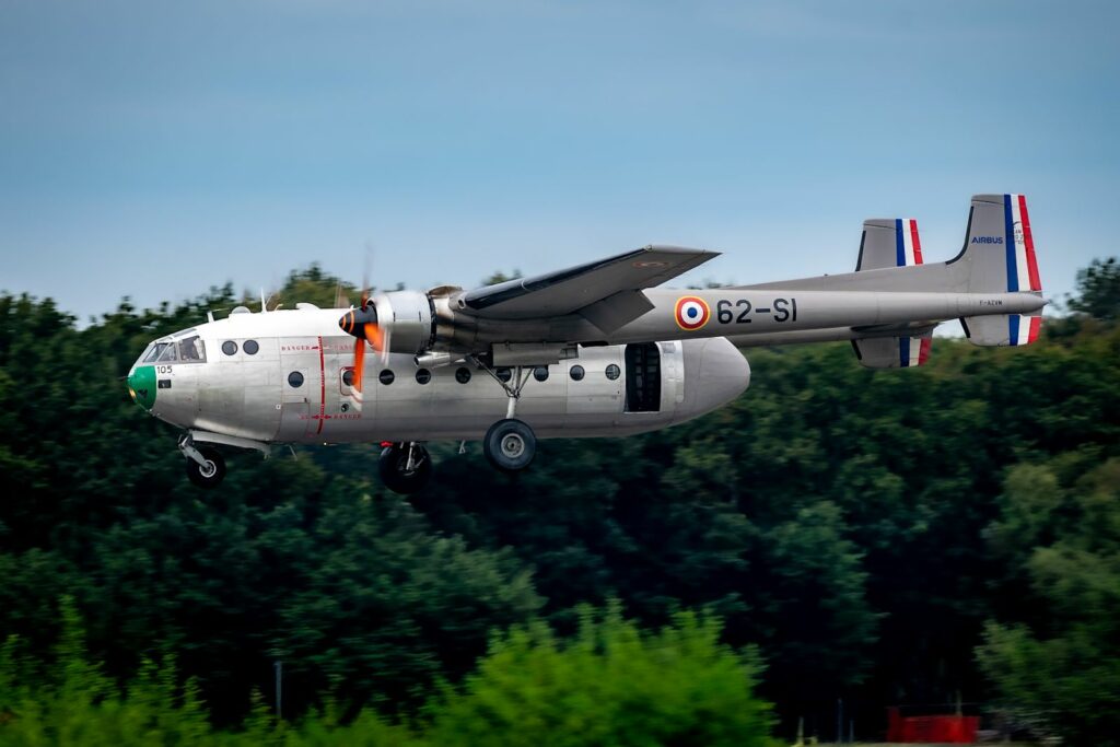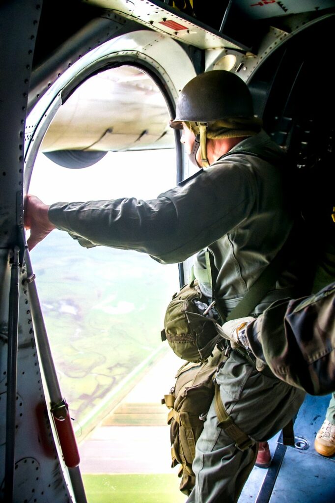 Sur le tarmac, le Noratlas trône fièrement. Avion de transport militaire mythique, il vibre encore de puissance. Les moteurs s’allument dans un grondement grave. La carlingue tremble, l’odeur du kérosène flotte. En file indienne, les parachutistes embarquent. Le rituel est précis. Pas d’hésitation. À l’intérieur, le bruit assourdissant des moteurs impose le silence.