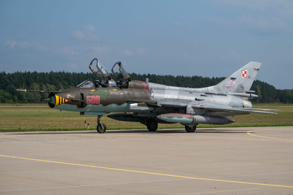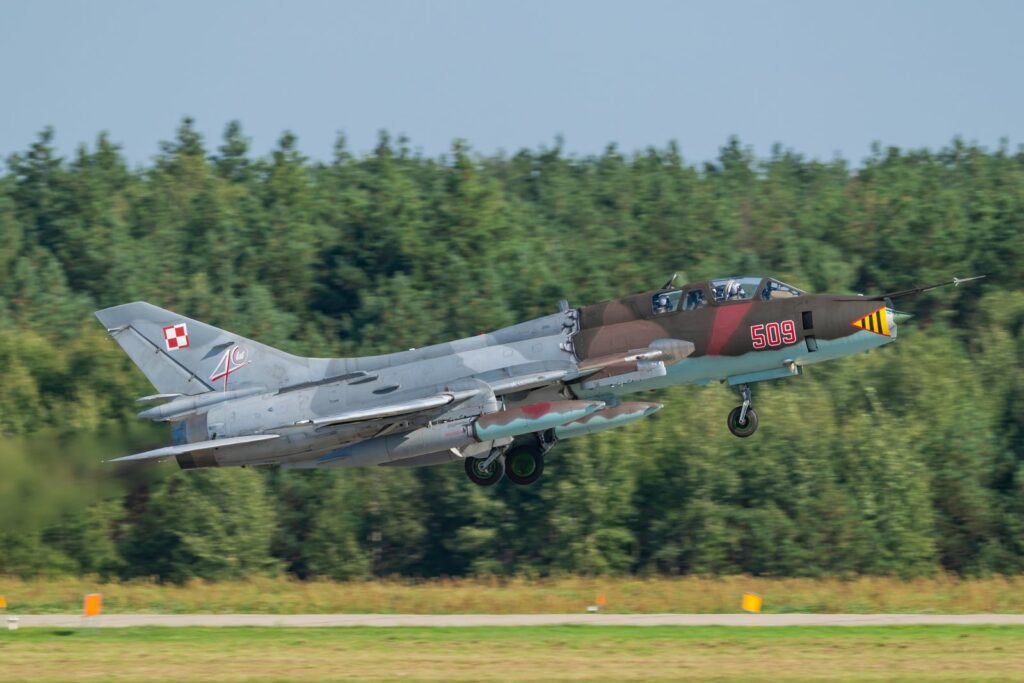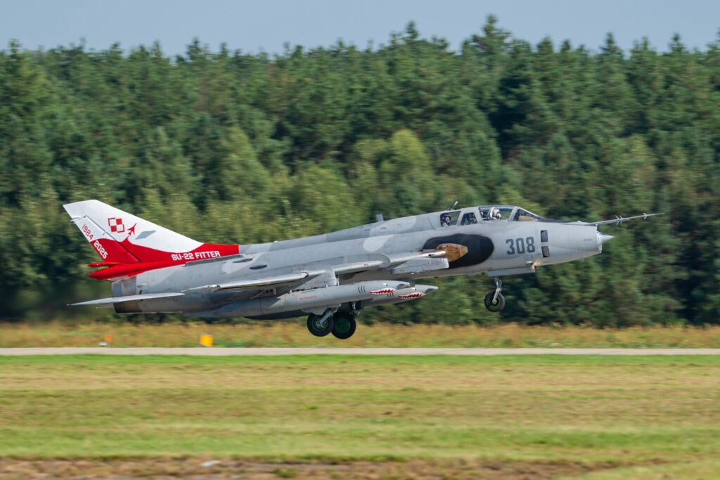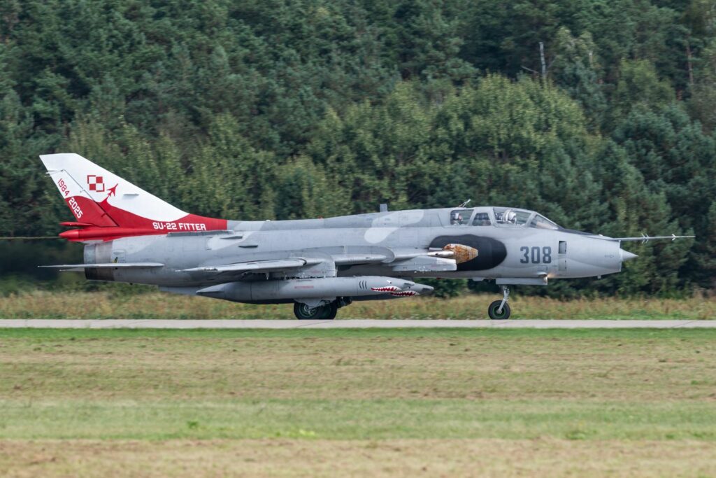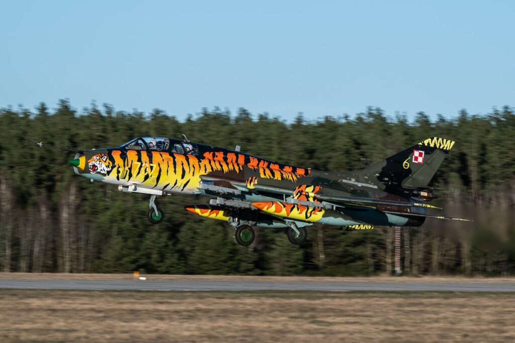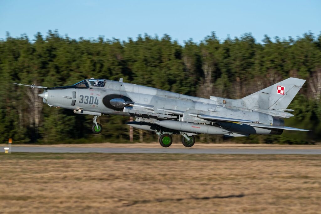 Malgré leur âge, les Su-22 polonais ont continué de jouer un rôle actif, participant à de nombreux exercices de l’OTAN où leur robustesse et leur faible coût d’exploitation étaient des atouts. Ils ont démontré leur capacité à opérer conjointement avec des chasseurs occidentaux, servant de plateformes de « Red Air » (agresseurs) ou de cibles pour les systèmes de défense aérienne. Cette période a été marquée par un débat constant au sein du gouvernement et de l’armée sur l’avenir de la flotte. En 2014, une décision fut prise de maintenir une petite flotte en service jusqu’à la fin des années 2020. Finalement, en raison du coût croissant de la maintenance et de la nécessité de s’aligner sur des plateformes plus modernes, la Pologne a fait le choix de retirer progressivement ses derniers Su-22. Ils seront remplacés par 48 KAI FA-50PL Golden Eagle achetés à la République de Corée. Ces derniers mois, les Su22 ont déménagé à Mirosławiec, la base de Świdwin étant en pleine reconstruction pour l’accueil des futurs Lockheed F-35A.