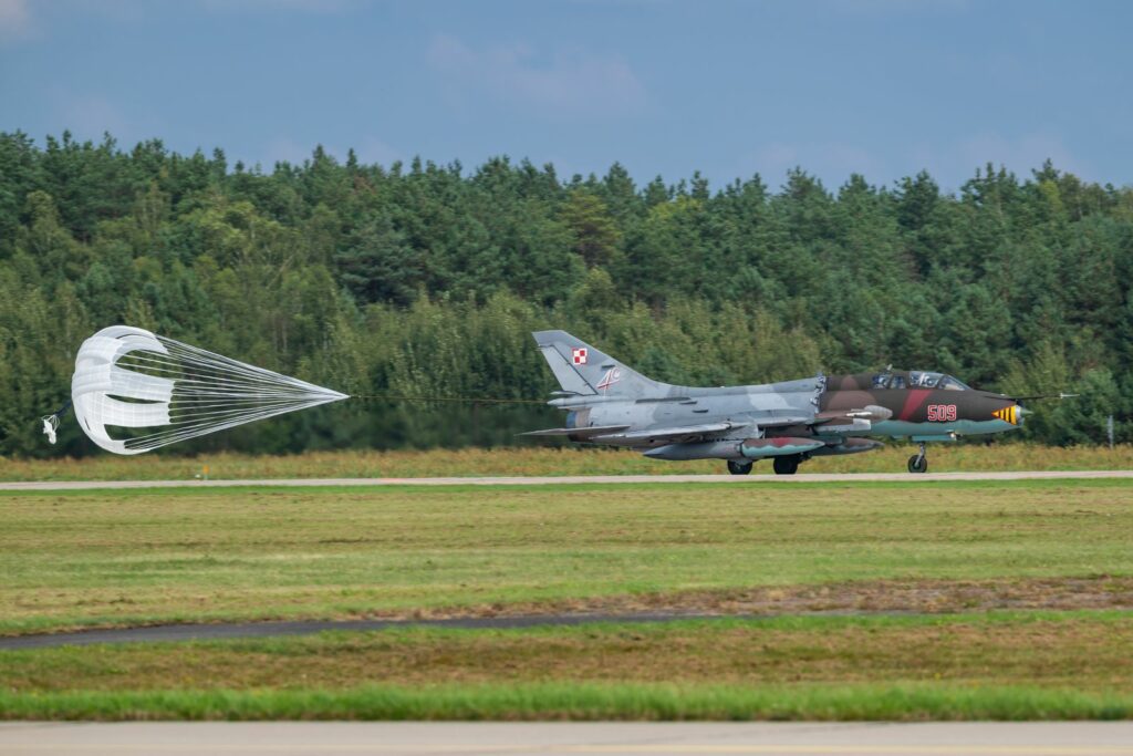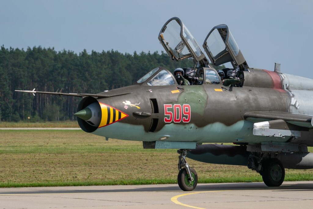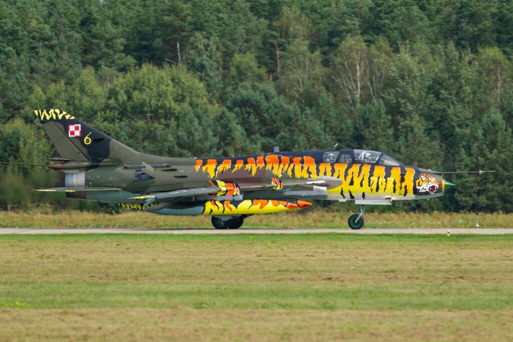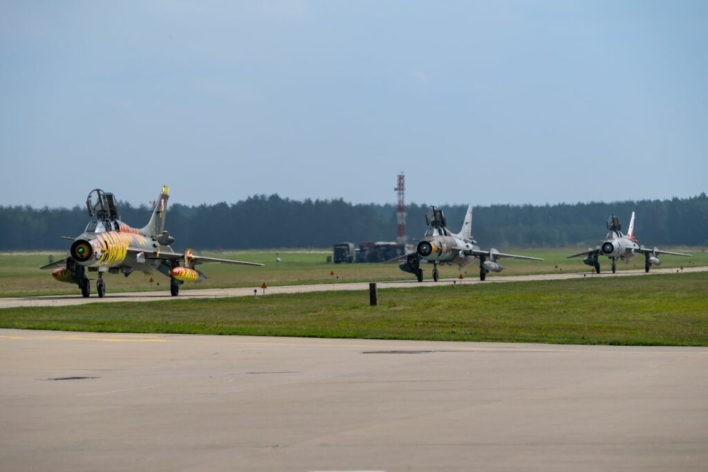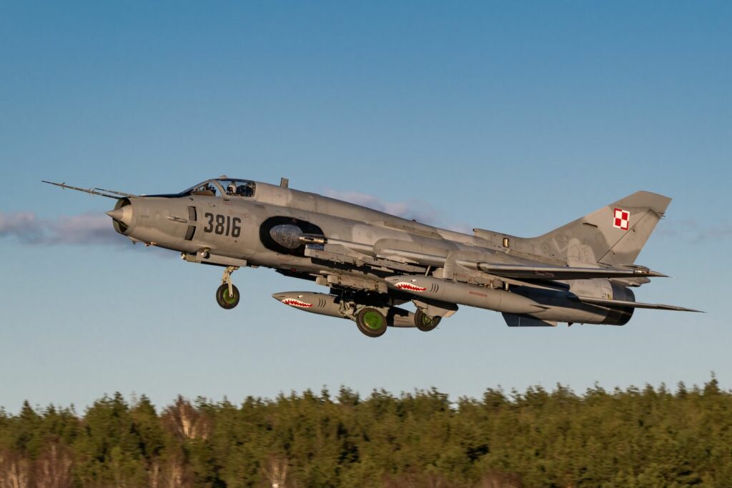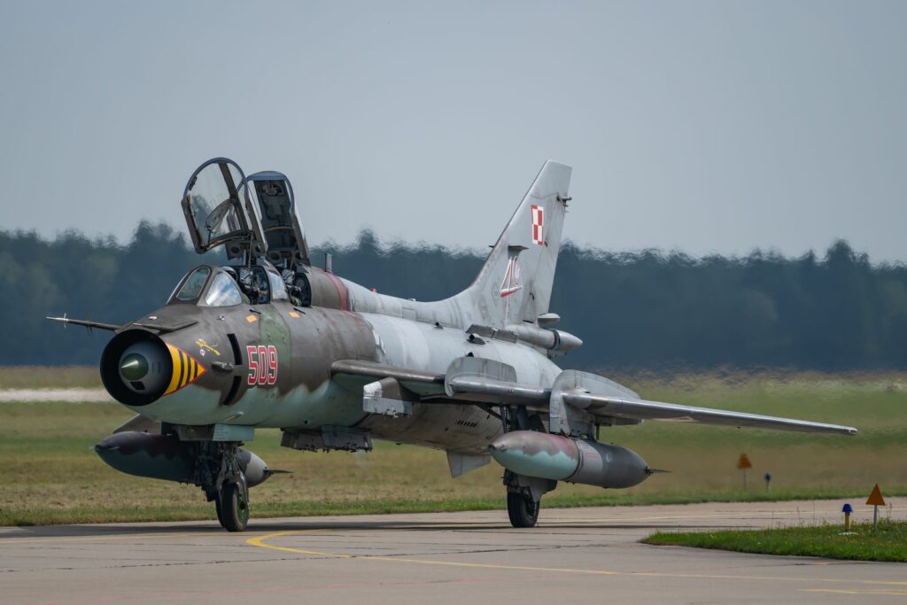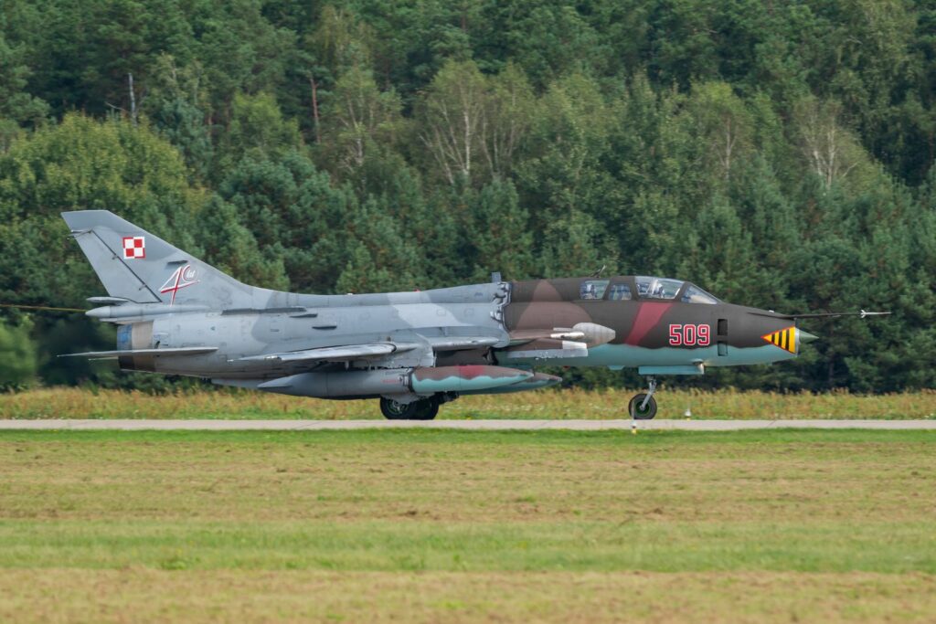 Malgré leur âge, les Su-22 polonais ont continué de jouer un rôle actif, participant à de nombreux exercices de l’OTAN où leur robustesse et leur faible coût d’exploitation étaient des atouts. Ils ont démontré leur capacité à opérer conjointement avec des chasseurs occidentaux, servant de plateformes de « Red Air » (agresseurs) ou de cibles pour les systèmes de défense aérienne. Cette période a été marquée par un débat constant au sein du gouvernement et de l’armée sur l’avenir de la flotte. En 2014, une décision fut prise de maintenir une petite flotte en service jusqu’à la fin des années 2020. Finalement, en raison du coût croissant de la maintenance et de la nécessité de s’aligner sur des plateformes plus modernes, la Pologne a fait le choix de retirer progressivement ses derniers Su-22. Ils seront remplacés par 48 KAI FA-50PL Golden Eagle achetés à la République de Corée. Ces derniers mois, les Su22 ont déménagé à Mirosławiec, la base de Świdwin étant en pleine reconstruction pour l’accueil des futurs Lockheed F-35A.