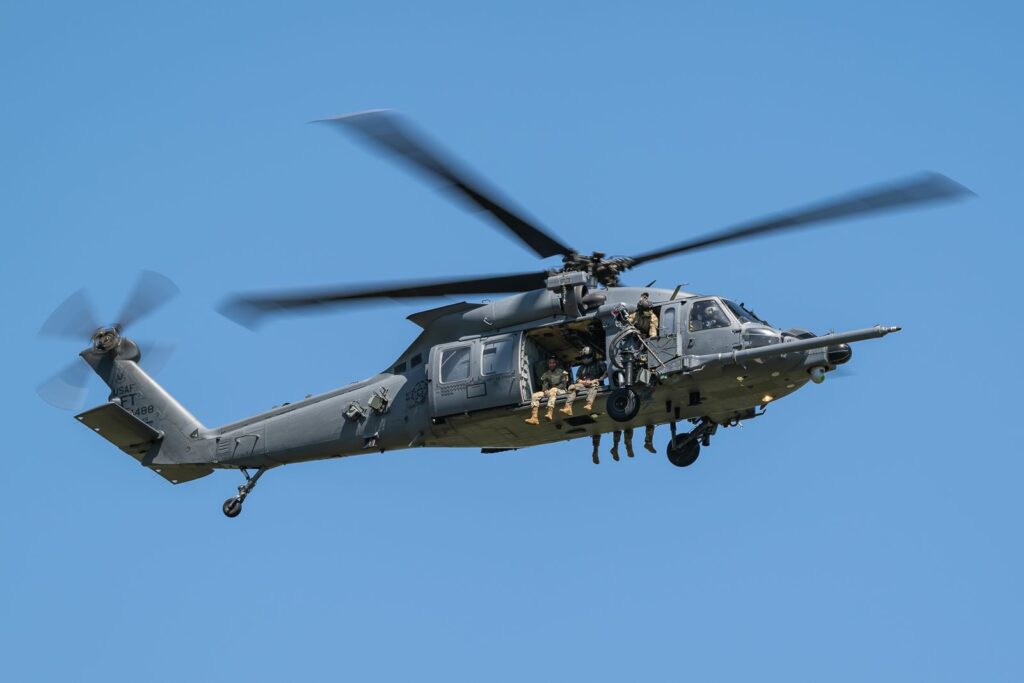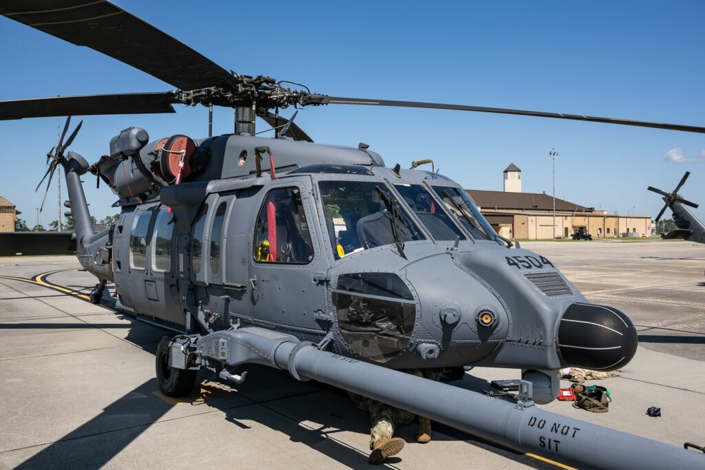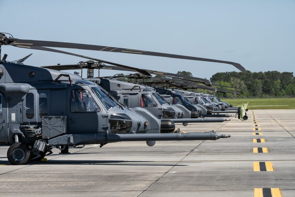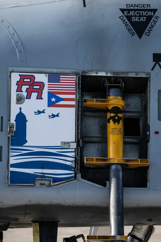 Après un rapide passage dans la salle de briefing et la salle de repos des équipages, nous sommes invités à aller sur le tarmac pour profiter des quelques machines sur place. Cinq Thunderbolts II nous attendent en plein soleil. Quelques mécanos et pilotes préparent les vols du matin. Un peu plus loin, plusieurs hélicoptères HH-60W Pave Hawk du 41st Rescue Squadron sont également présents. Nous sommes autorisés à nous en rapprocher.
