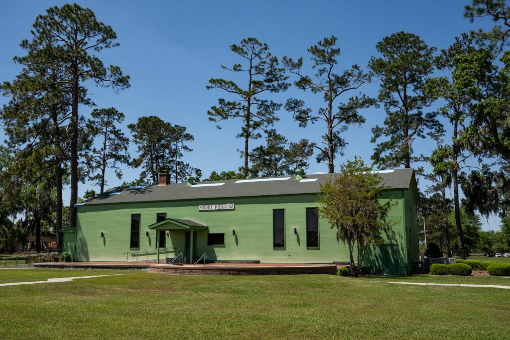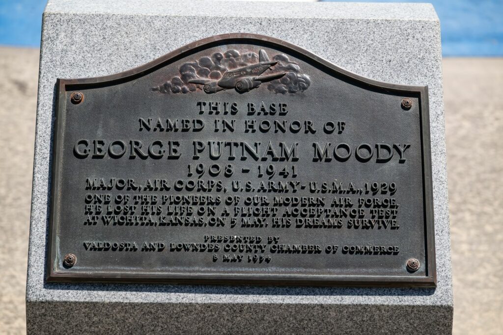 La base fut construite en 1941 sur le site de Moody Fields par le 29th Training Wing pour la formation initiale au pilotage. Appelée originellement Vadolsta Airfield en juin 1941, la base fut renommée Moody Army Air Field le 6 Décembre 1941. La base est nommée en l’honneur du Major George Moody (1908-1941) tué en mai 1941 dans le crash du prototype du Beech Model 25, un appareil d’entraînement bimoteur, lors d’un vol d’essai à Wichita dans l’état du Kansas. Le Beech Model 25 deviendra d’ailleurs le AT-10 “Wichita” utilisé à Moody Fields durant toute la Seconde Guerre Mondiale. La base change de nom une dernière fois le 13 janvier 1948 pour devenir définitivement Moody Air Force Base.
