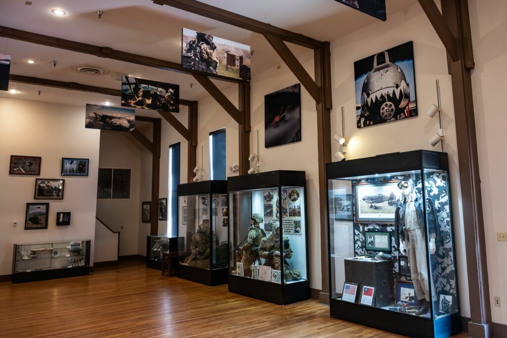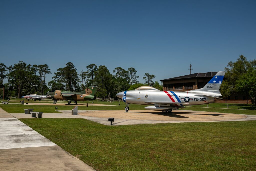 Comme sur de très nombreuses bases, un musée à ciel ouvert (Air Park) permet d’exposer les avions sur lesquels l’escadron a pu voler. Les avions sont superbement maintenus. A se demander s’ils ne sont pas encore en état de vol ! Seul un P-40 Warhawk est préservé à l’ombre avec une plaque commémorant les origines et le fier héritage qu’il porte.