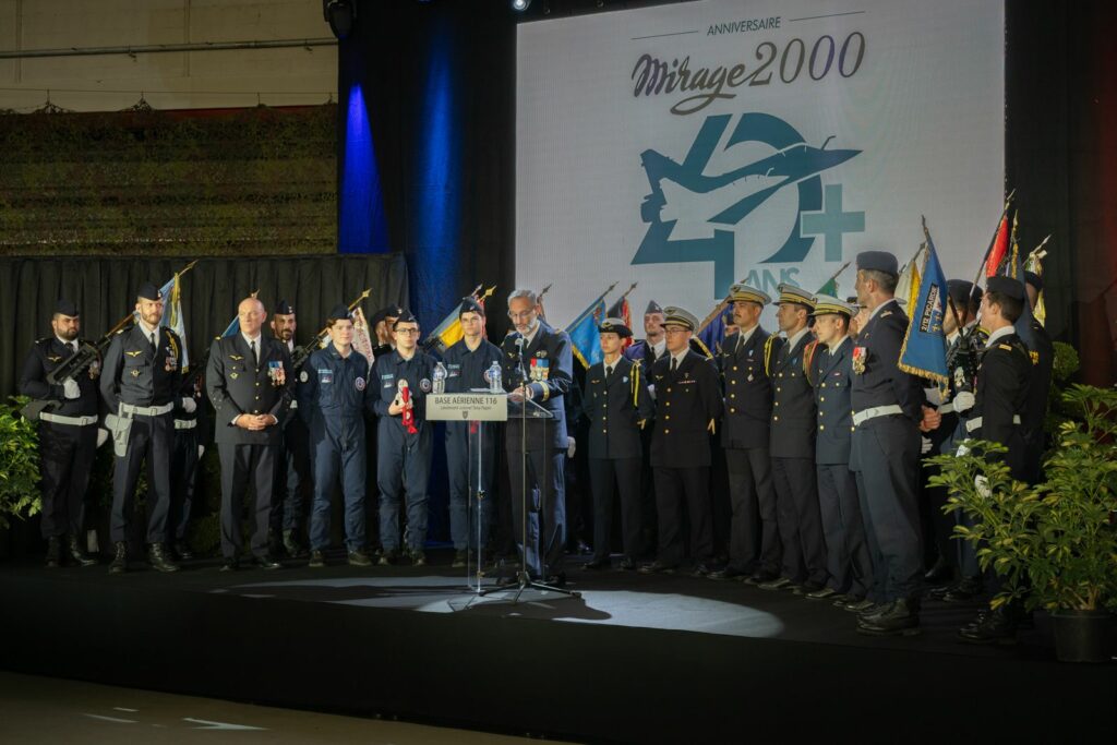 Le chef d’état-major de l’armée de l’air et de l’espace, le général Jérôme Bellanger, ancien pilote ayant accumulé plus de 2 400 heures de vol sur Mirage 2000 et 59 missions de guerre, a salué « la pureté de son dessin », son profil élancé et ses ailes delta parfaites : « L’heure du repos n’est pas venue », a-t-il souligné, rappelant que cet « emblème » reste d’une redoutable efficacité.