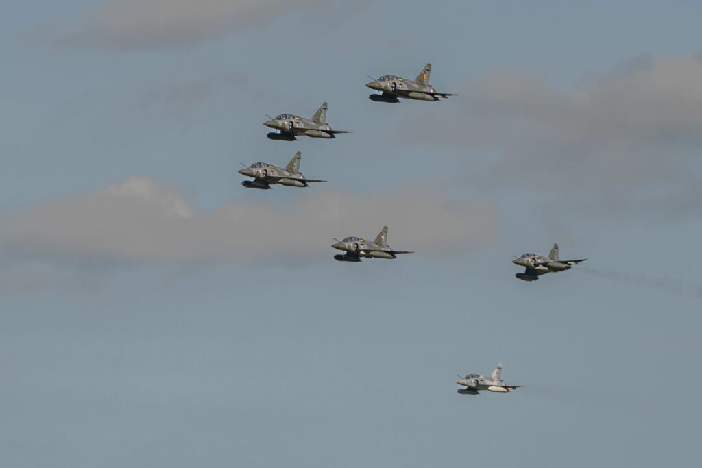 Ses quatre appareils ont été rejoints par 5 Mirage 2000D RMV et 1 Mirage 2000B de la 3ème escadre de chasse stationnée à Nancy, pour une présentation en double chevrons de la chasse, en deux box de 5 appareils, les «bleu» avec les 4 «2000-5» et un «2000B» et les Muds avec leurs «2000D RMV» , puis passage en deux box de 4 , mixte de «2000D RMV» et «2000-5» .