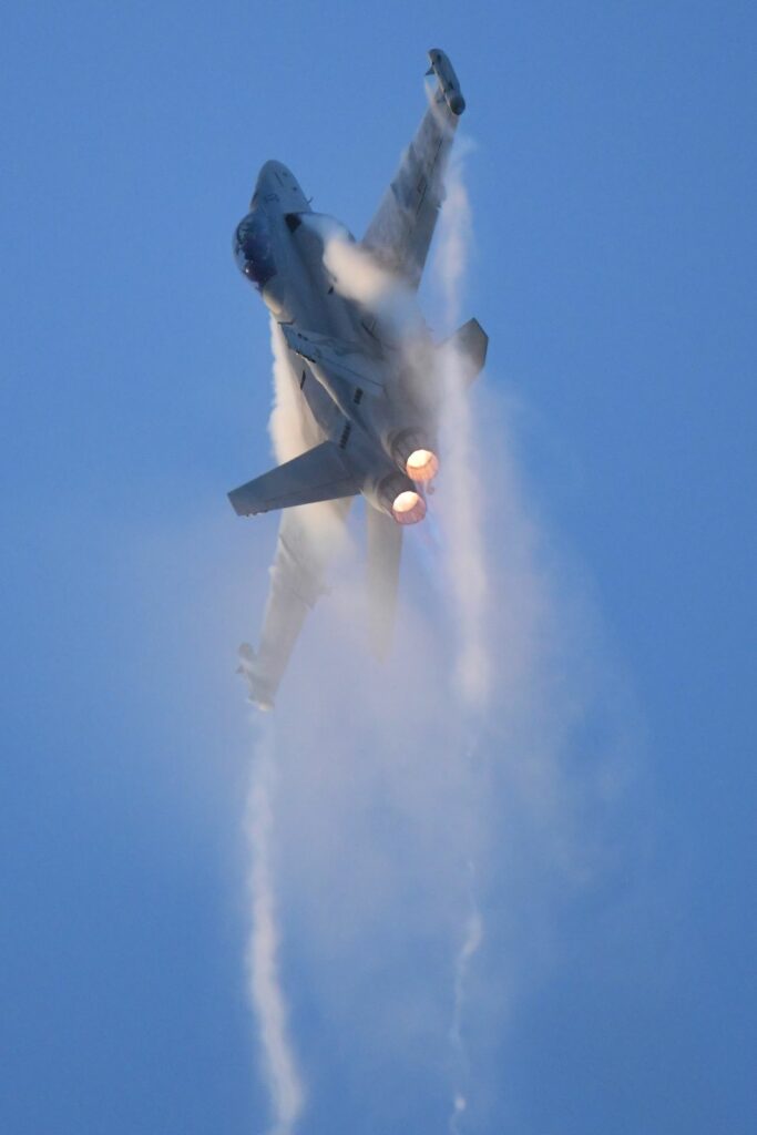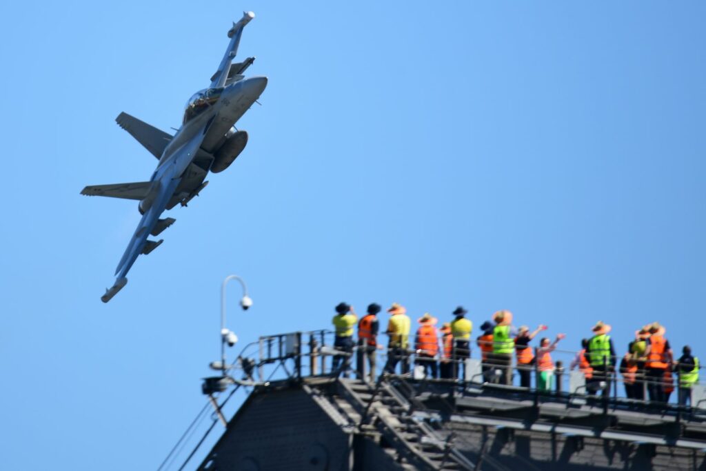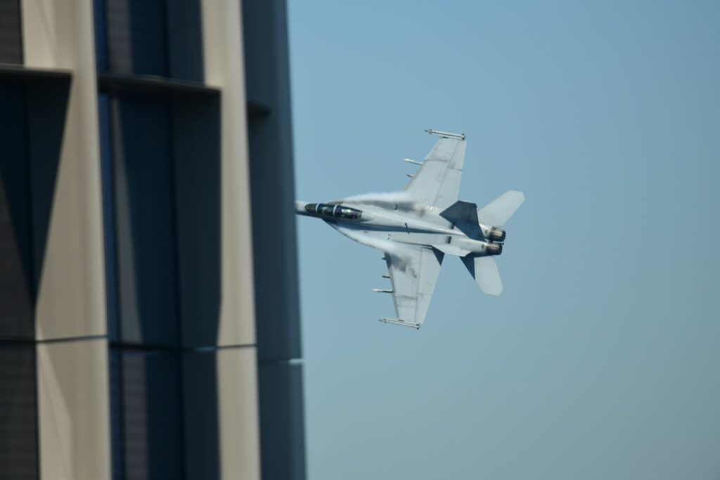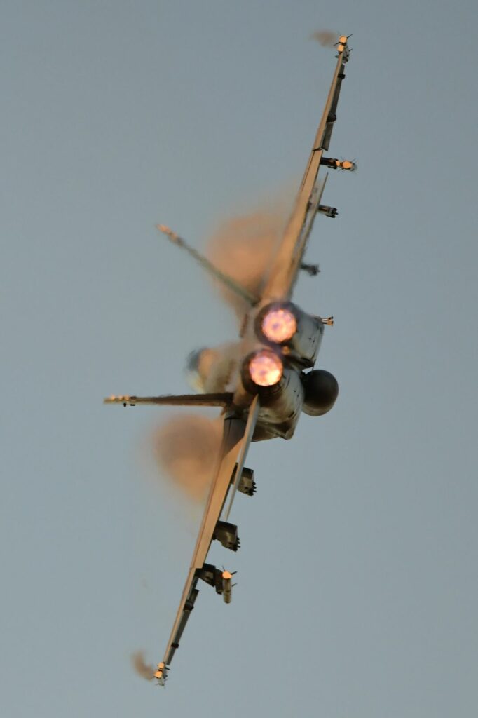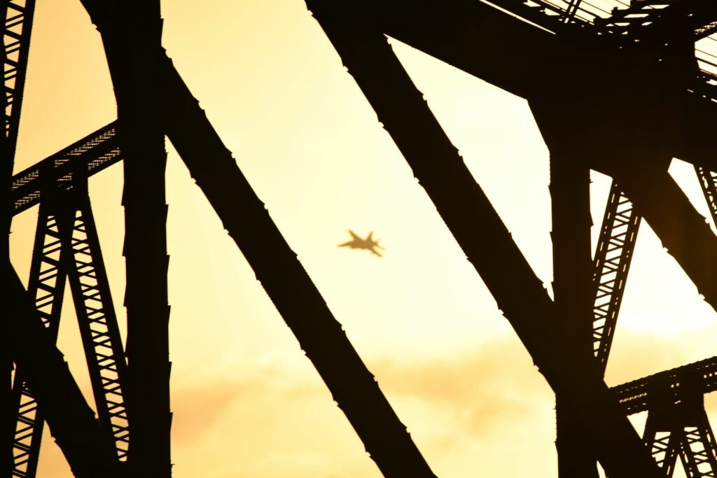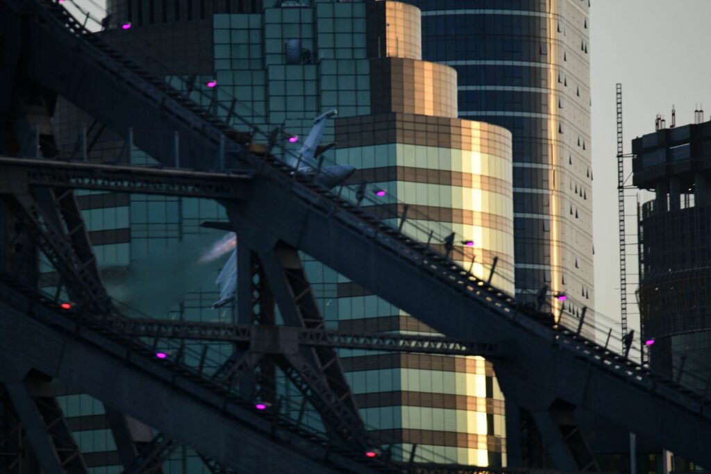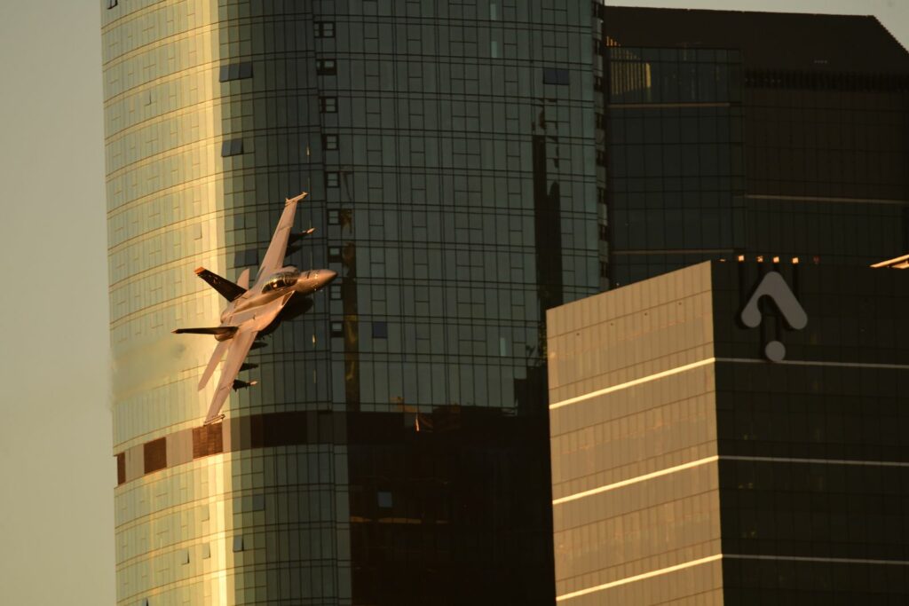 Le second temps, qui est en fait les vols de démonstration officiels, a lieu le samedi au moment du coucher du soleil, lorsque celui-ci est sur le point de quitter l’horizon. Cela rend la prise de photo délicate mais constitue un challenge incroyable. Cela offre deplus certaines couleurs dignes du panorama du premier Top Gun. Les images vaudront mieux que mille mots.Cet évènement est très populaire à Brisbane et regroupe les foules. Les meilleurs points de vue sont plébiscités tôt dans la journée. Il faut, soit réserver des mois à l’avance un rooftop (attention – les prix sont ajustés en conséquence), et faire preuve de patience une bonne partie du samedi (prévoir d’y aller en groupe pour alterner et se rafraichir), ou alors connaître un gestionnaire d’immeuble qui ouvrirait gentiment le toit d’une des tours – quasiment mission impossible, mais pas tant que ça non plus