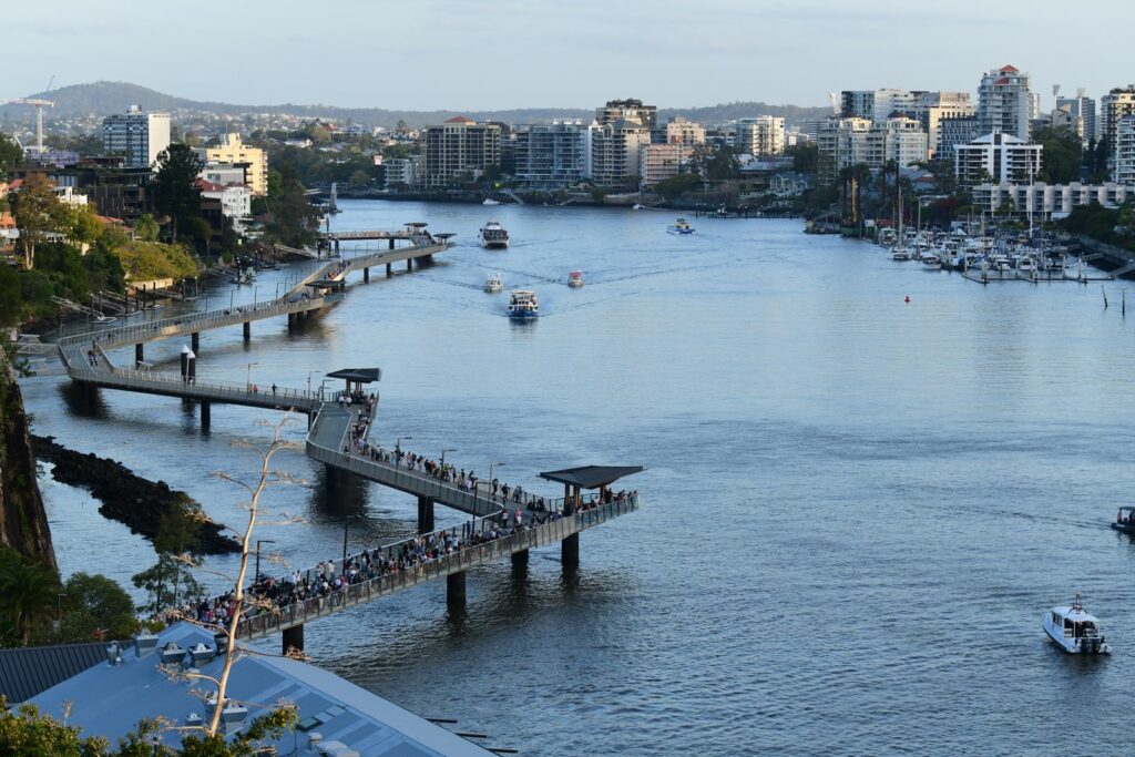 Brisbane est la capitale du Queensland, située à environ un tiers de la côte Est de l’Australie, depuis le Nord. Non que cela ait son importance, mais sachant que le trajet entre Sydney et Brisbane prend 10 heures de route ou une heure de vol, un vol entre Brisbane et Melbourne environ 2h30 et un vol entre Brisbane et Cairns au Nord 3 heures, cela permet de situer la ville par rapport à l’immensité de la côte. Le climat y est agréable, y compris en hiver, si l’on peut encore appeler ça « l’hiver ». Cela s’apparente plutôt à une fin de printemps dans nos contrées.