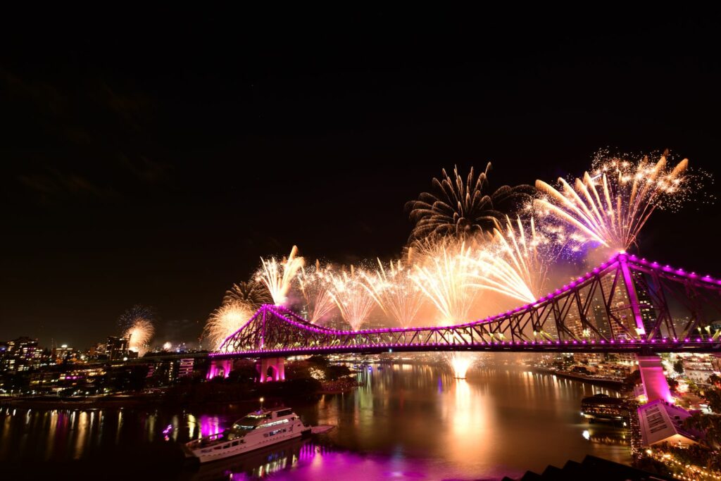 Pour les deux éditions, j’ai choisi d’alterner les points de vue. Face au Story Bridge en 2023, puis South Bank et le nouveau Star Brisbane en 2024. La suite en images, en IA ou autres retouches… A noter qu’en 2023 l’Australian Army n’était pas présente suite à l’accident d’un NH90 le mois précédent l’évènement.