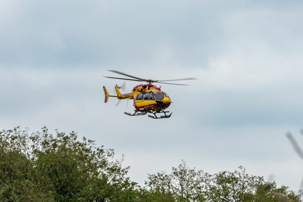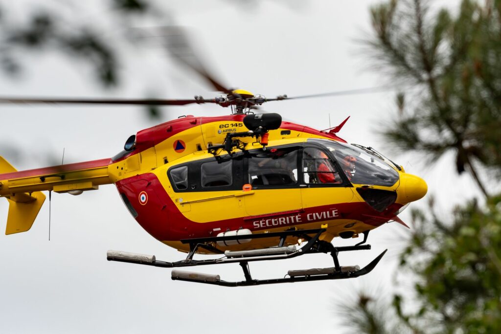 Un hélicoptère EC-145 de la Sécurité Civile et son équipage composé d’un pilote et d’un mécanicien opérateur de bord de la base aéronautique de quimper