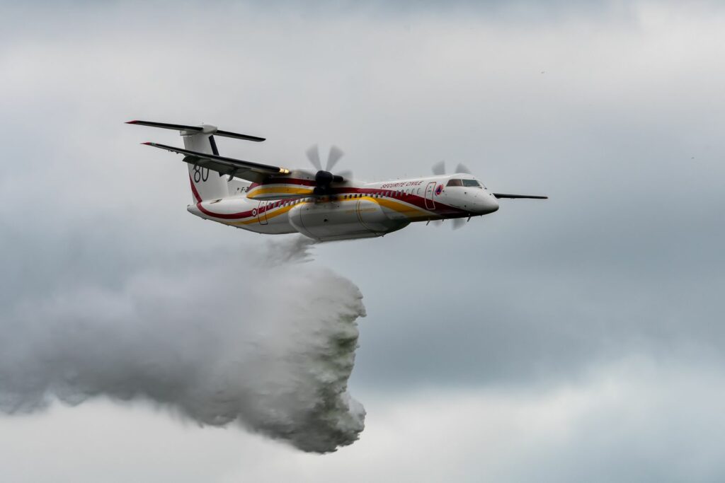 La sécurité civile française est équipée de 8 Dash version bombardier d’eau.