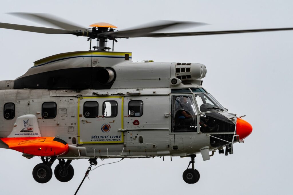 Cet hélicoptère (AS-332 Super Puma) permet des largages plus précis et plus bas, ce qui le rend efficace dans les zones au relief difficile ou dans les vallées.