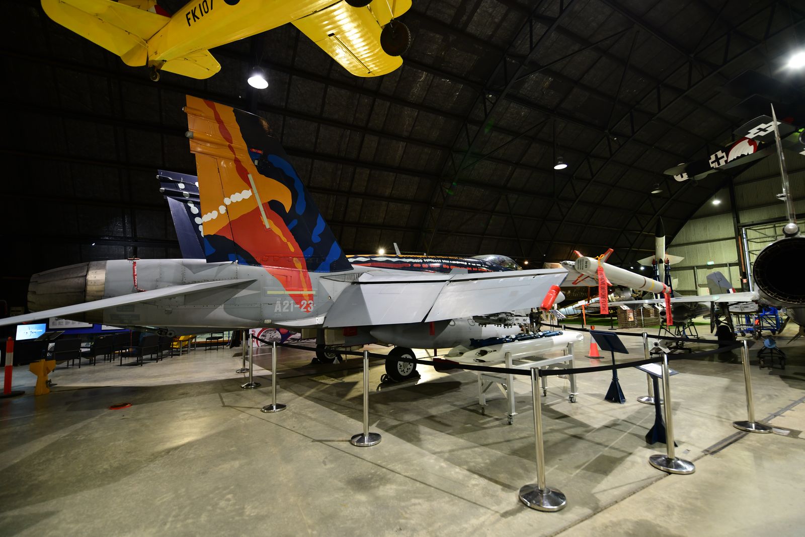 Avant le F-35A, la base accueillait le F18 Hornet, dont celui préservé au musée de la base qui fut le dernier utilisé par la RAAF en démonstration et piloté par le Commandant Easty, que j’avais eu l’occasion de voir en vol en 2019 lors du meeting aérien d’Omaka en Nouvelle Zélande.