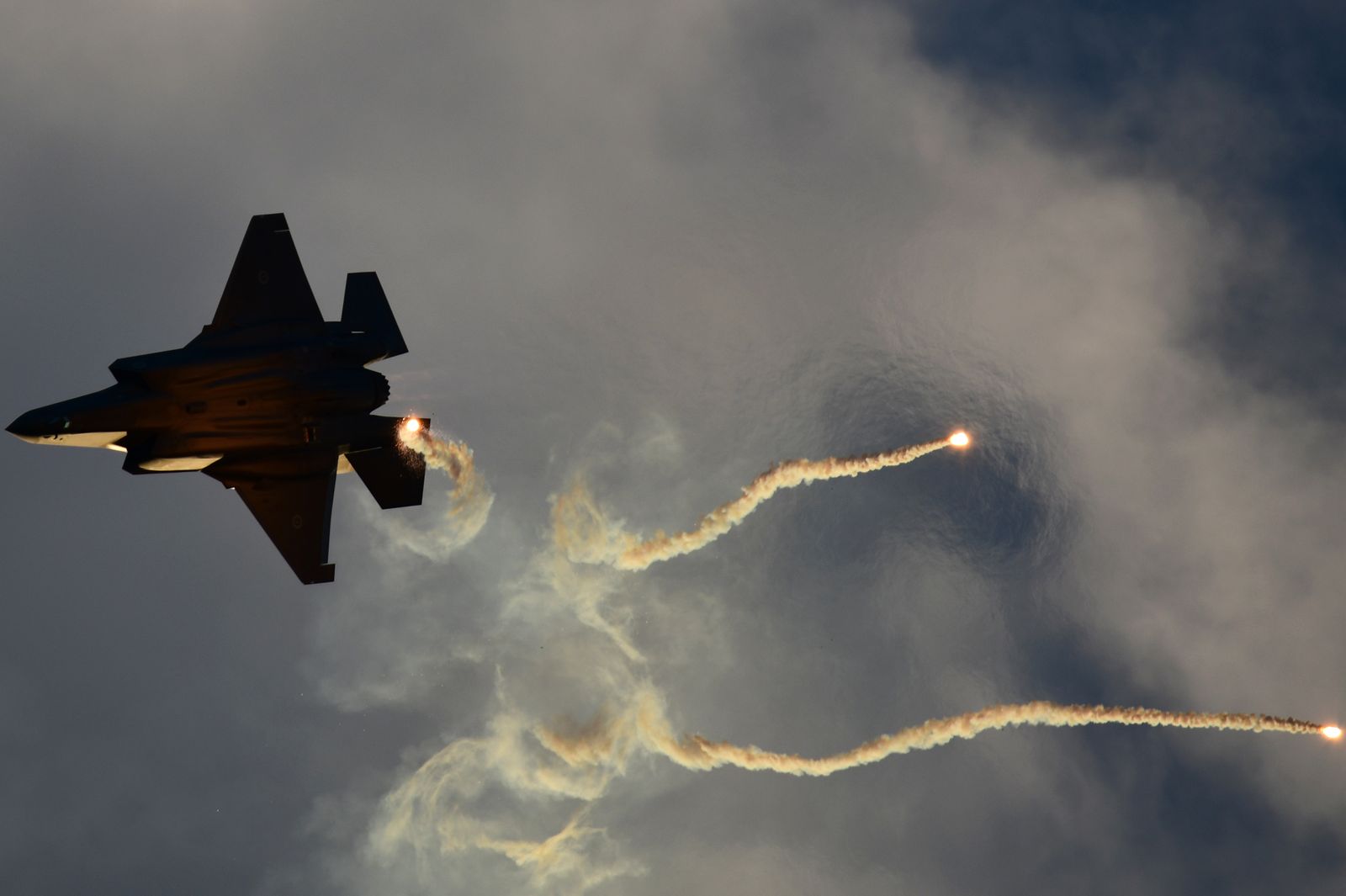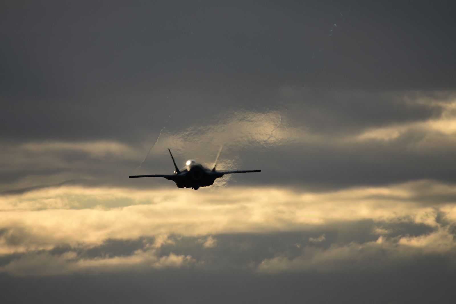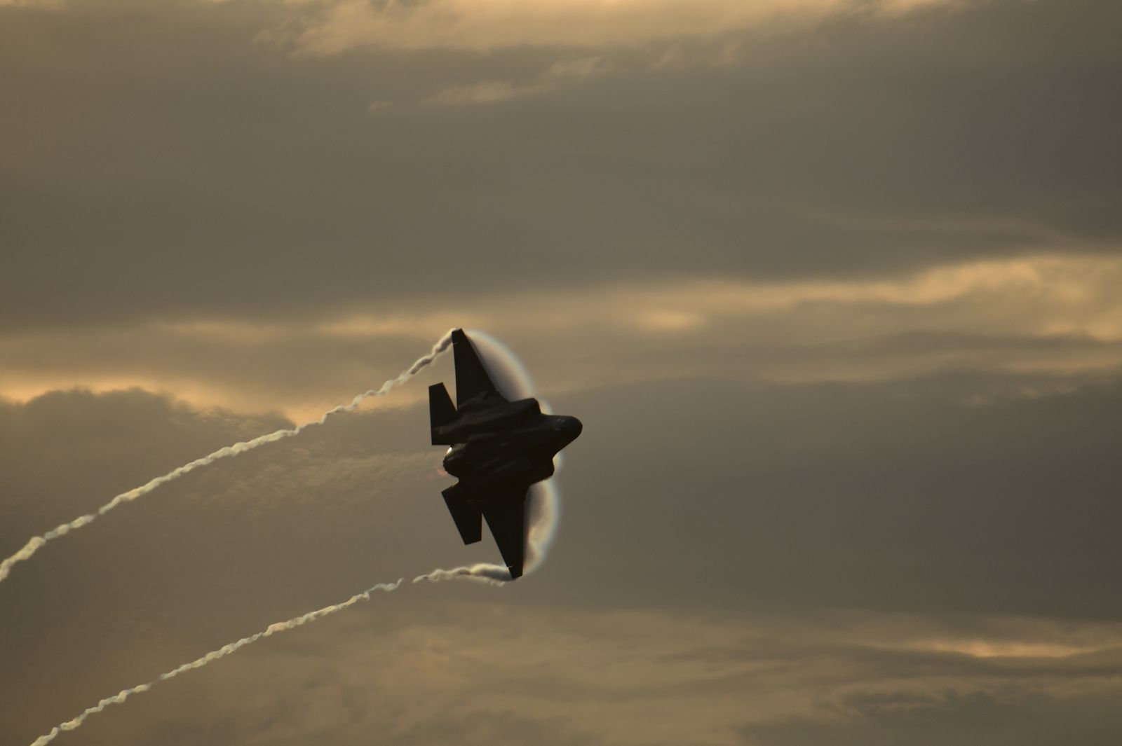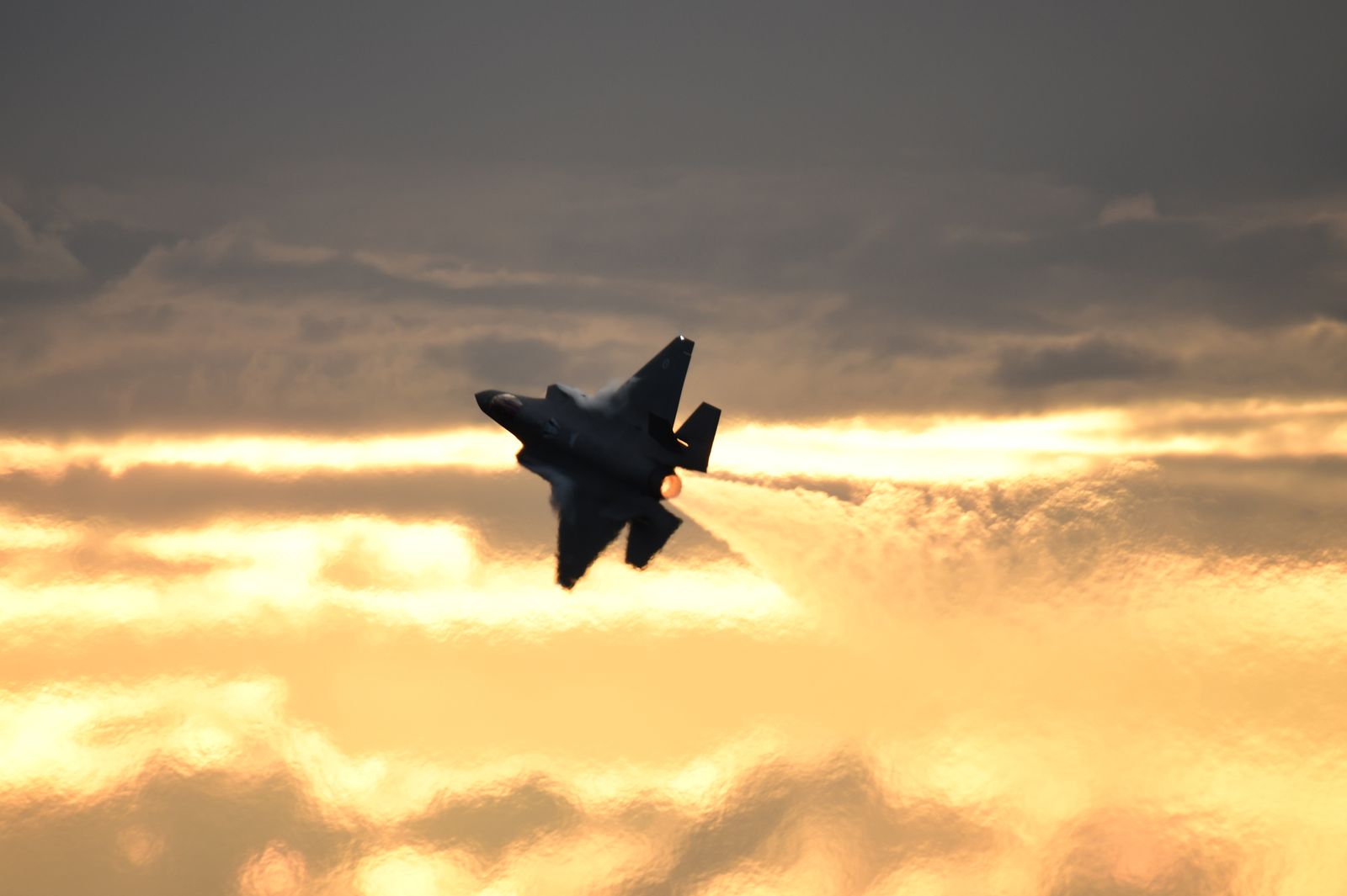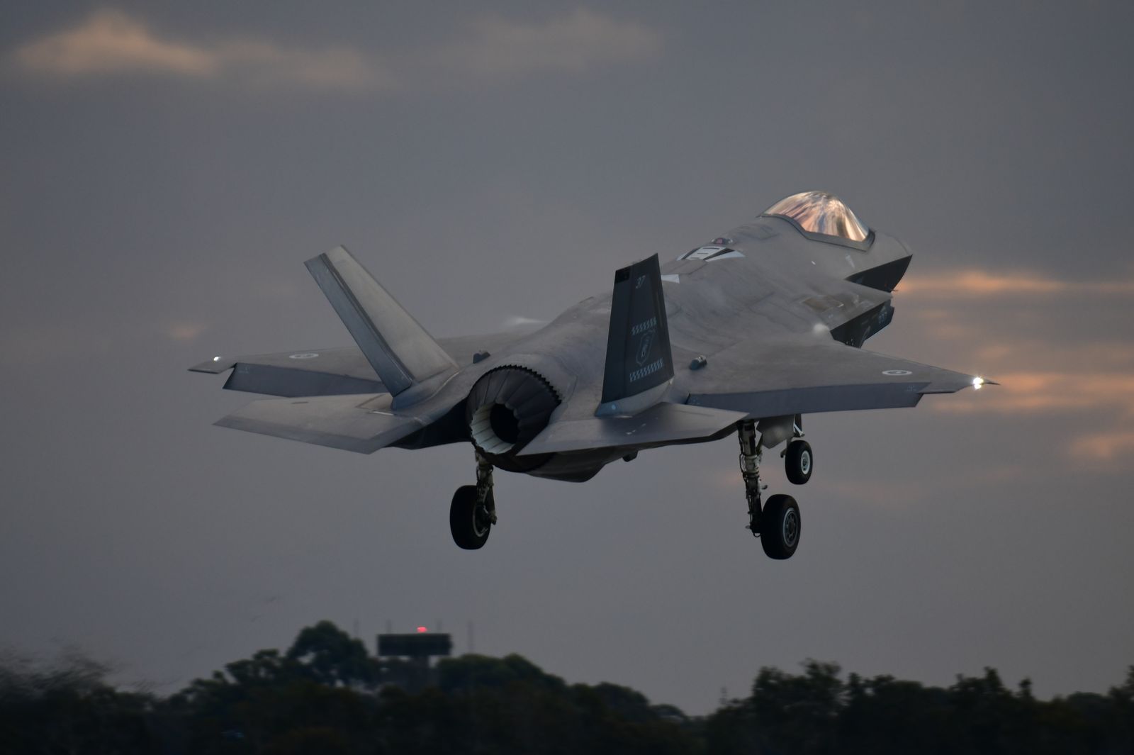 Enfin, il aurait été dommage de ne pas assister à un vol de démonstration d’un F35-A. Une démonstration est annoncée en fin de journée. Le rendez vous est pris. Cependant, une tempête approche laissant présager une possible annulation du vol. Le chasseur décolle avec un ciel s’assombrissant, le soleil commence à se coucher. « Damn » – va-t-il poursuivre sa démo ? Finalement, cela donnera lieu à de très belles images.