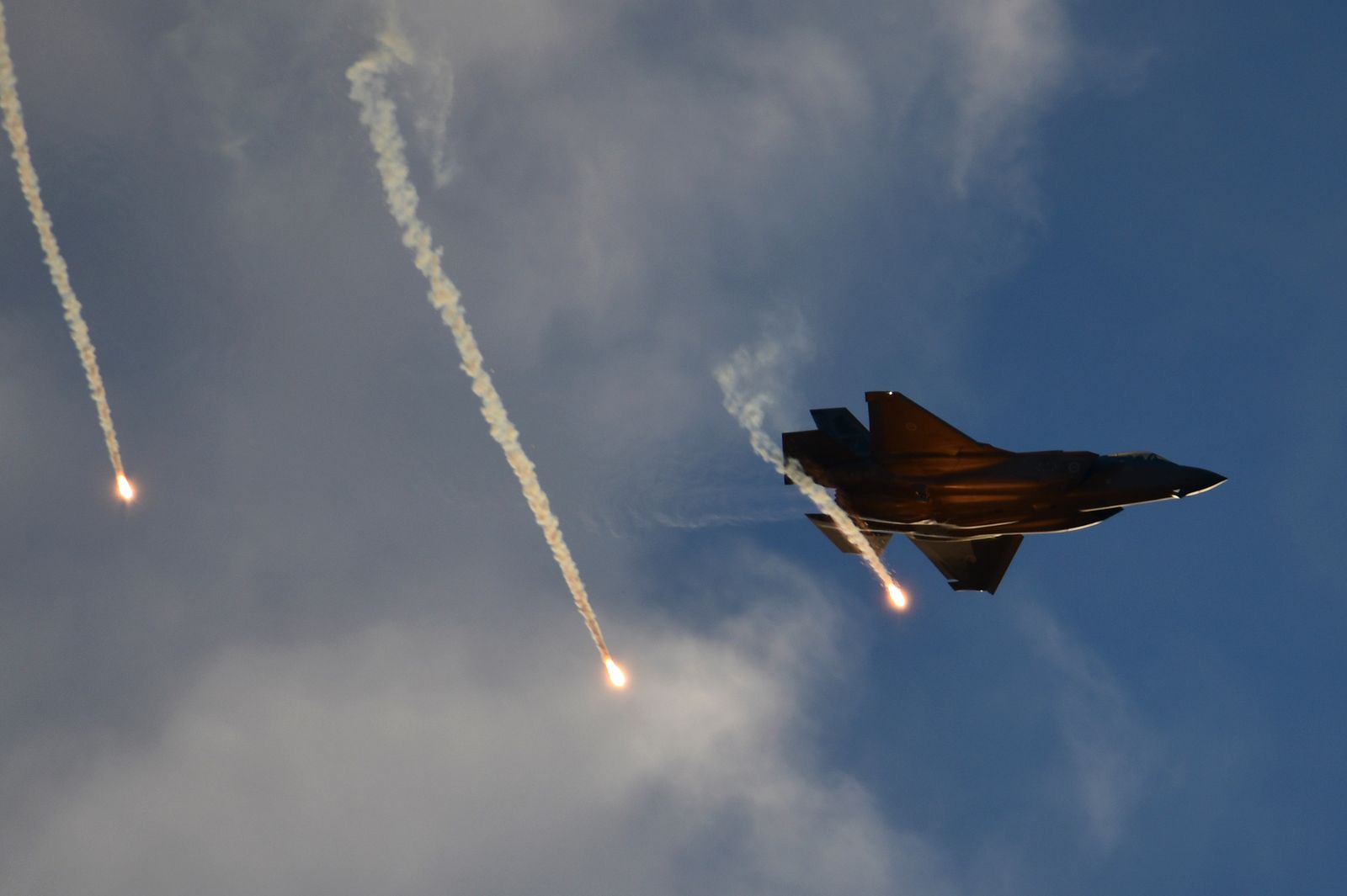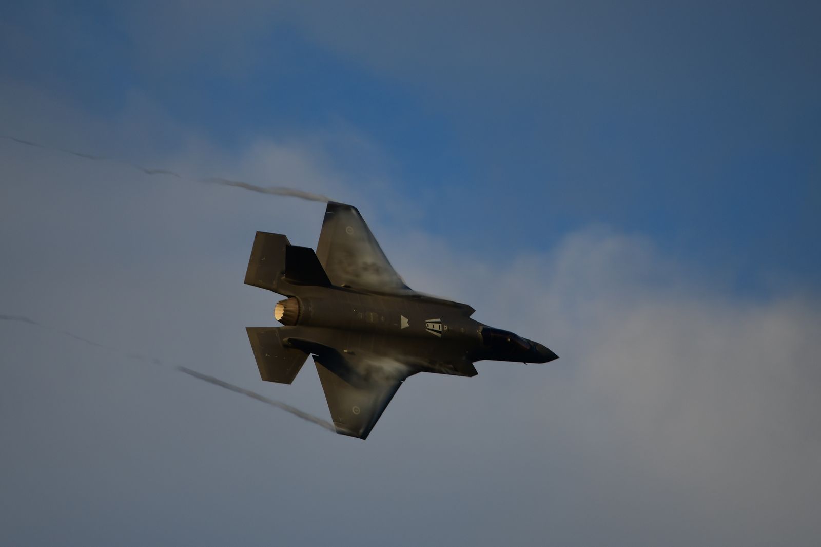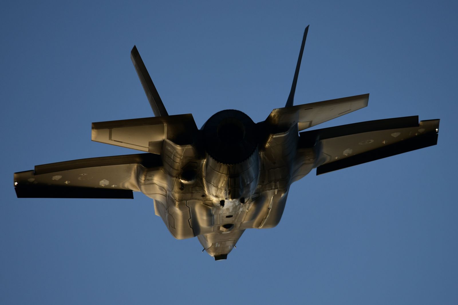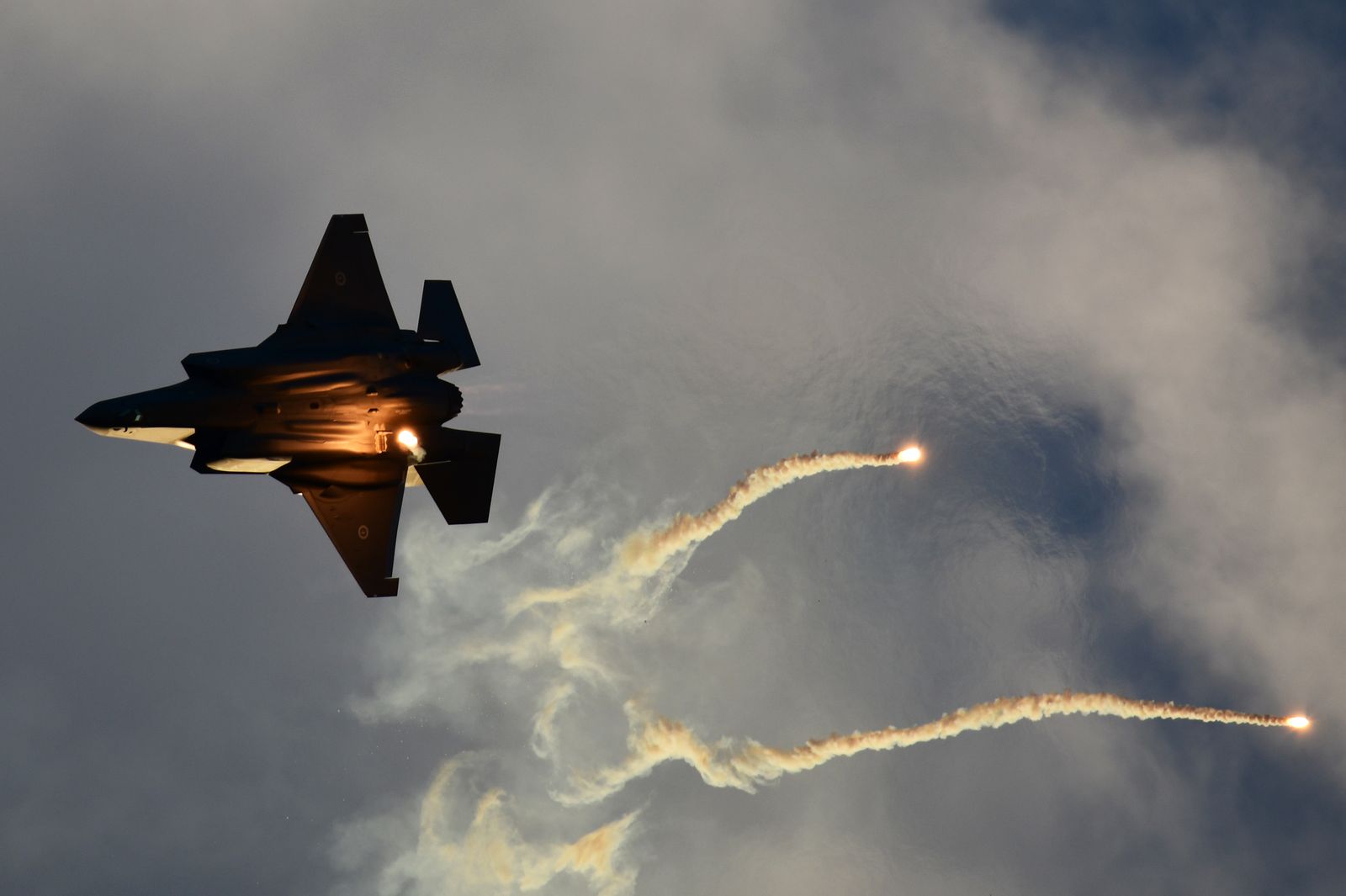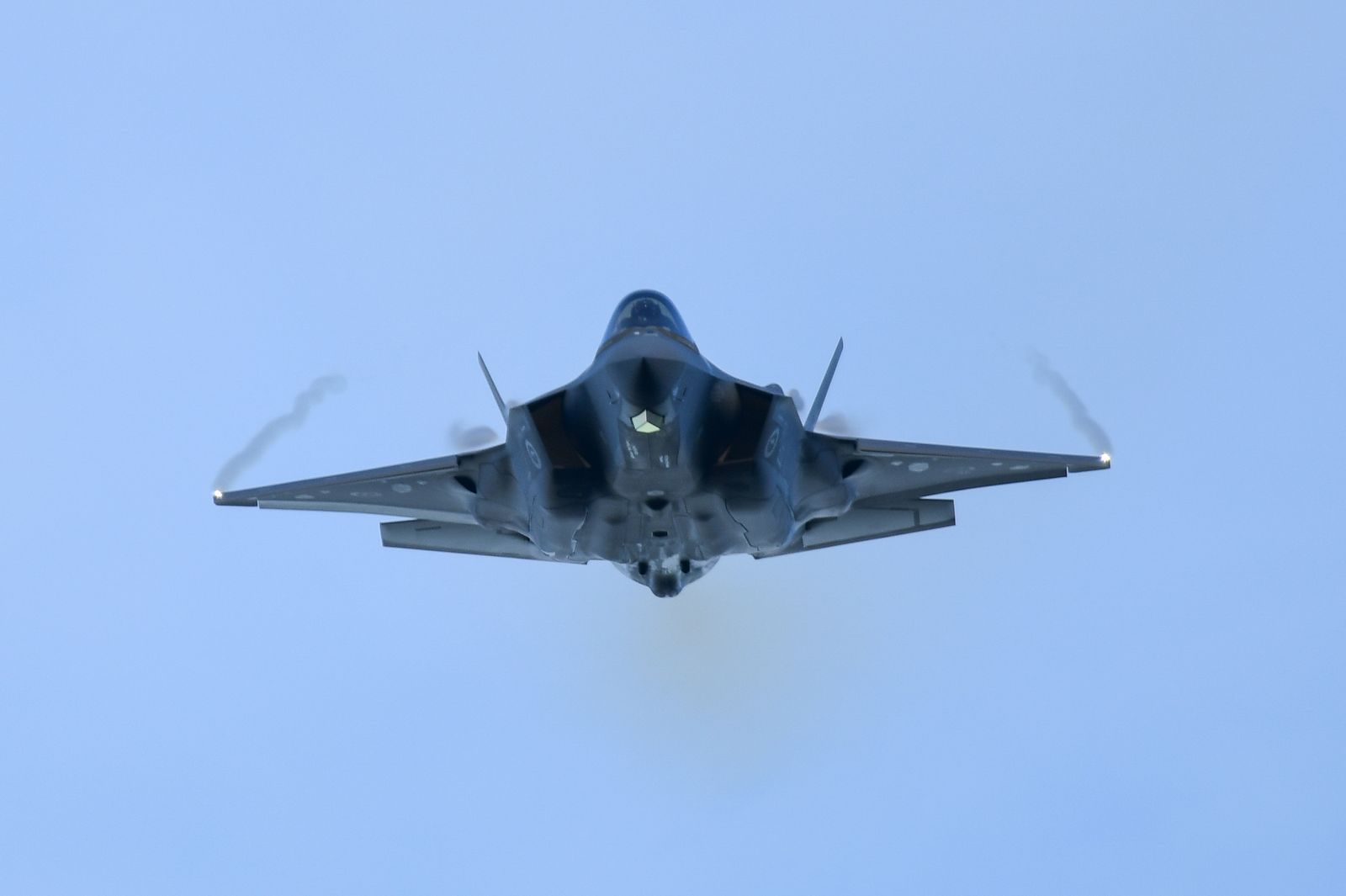 Enfin, il aurait été dommage de ne pas assister à un vol de démonstration d’un F35-A. Une démonstration est annoncée en fin de journée. Le rendez vous est pris. Cependant, une tempête approche laissant présager une possible annulation du vol. Le chasseur décolle avec un ciel s’assombrissant, le soleil commence à se coucher. « Damn » – va-t-il poursuivre sa démo ? Finalement, cela donnera lieu à de très belles images.